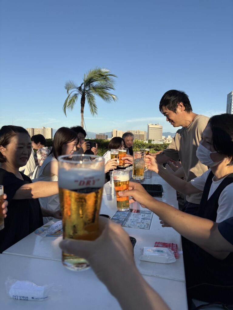 今年の納涼会は新潟グランドホテル リゾートガーデンで行い、美味しい料理と冷たいドリンクで乾杯♪